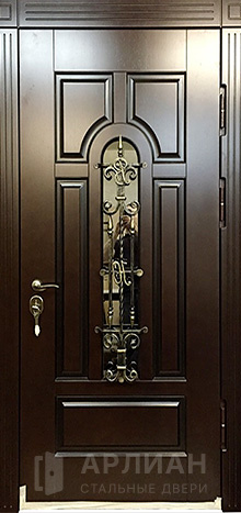 Двустворчатая дверь со стеклом и кованной решеткой №2