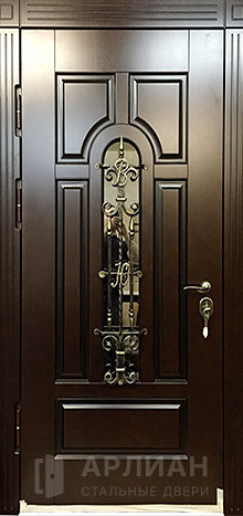 Металлическая дверь в частный дом со стеклом и решеткой №36