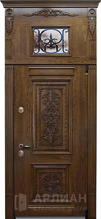 Арочная дверь для частного дома со стеклом входная №65