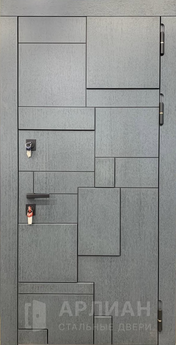 Серая дверь с отделкой МДФ под шлифованный металл №500