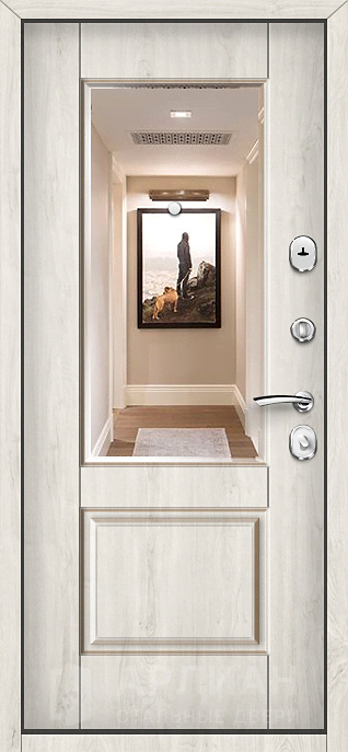 Входная дверь для квартиры с зеркалом и отделкой ясень №57