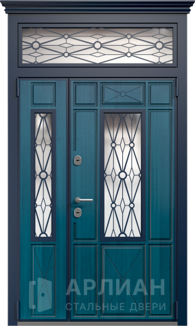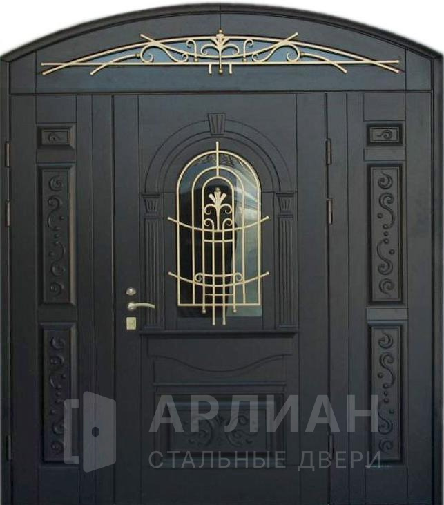 Фото «Двухстворчатая входная дверь со стеклом и ковкой №9»
