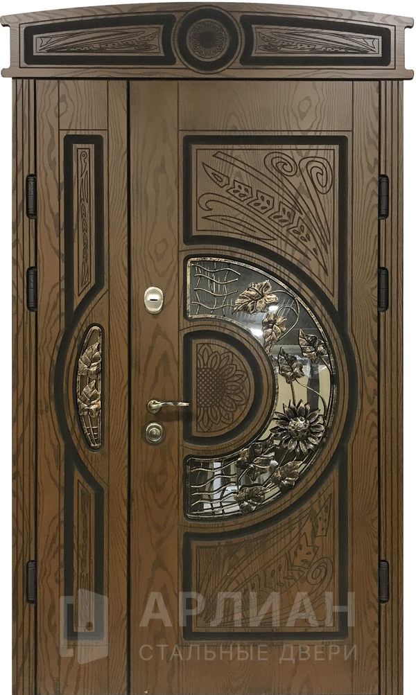 Входная дверь арочная в квартиру с коричневой панелью №62
