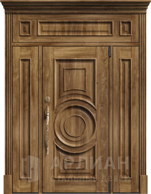 Кованая входная дверь в частный дом со стеклопакетом №4