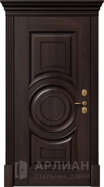 Высокая арочная дверь с фрамугой и кованой решеткой №12