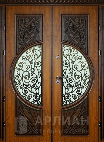 Утепленная входная дверь для коттеджа с кованными элементами №28