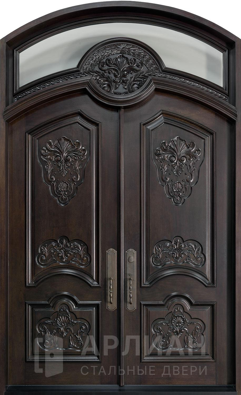 Арочная двустворчатая дверь со стеклом №14