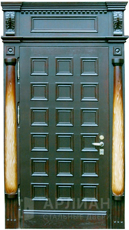 Высокая арочная дверь с фрамугой и кованой решеткой №12