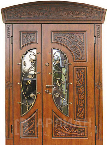 Арочная двустворчатая стальная дверь для загородного дома №125