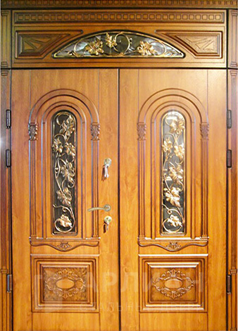 Эксклюзивная арочная дверь в коттедж со стеклянными вставками №10