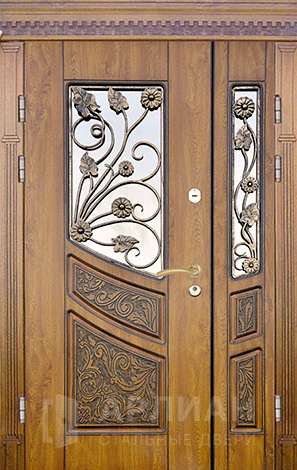 Входная дверь массив дуба в коттедж со стеклом и ковкой №19