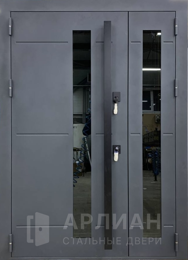 Двустворчатая входная дверь со стеклом и с витражом №76